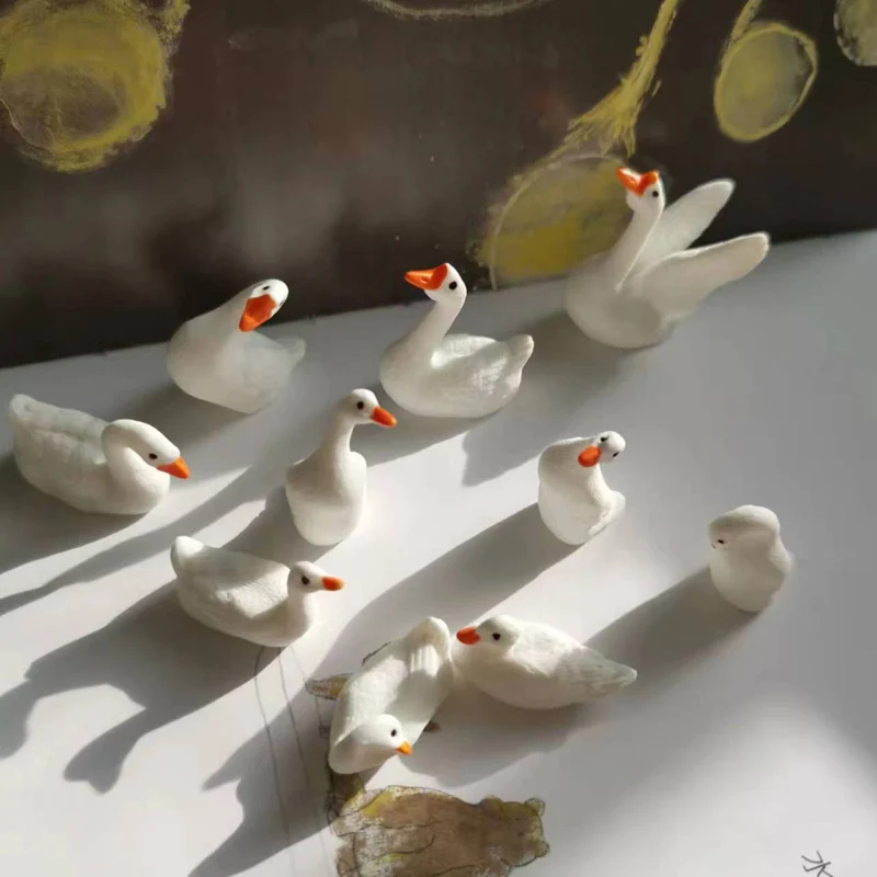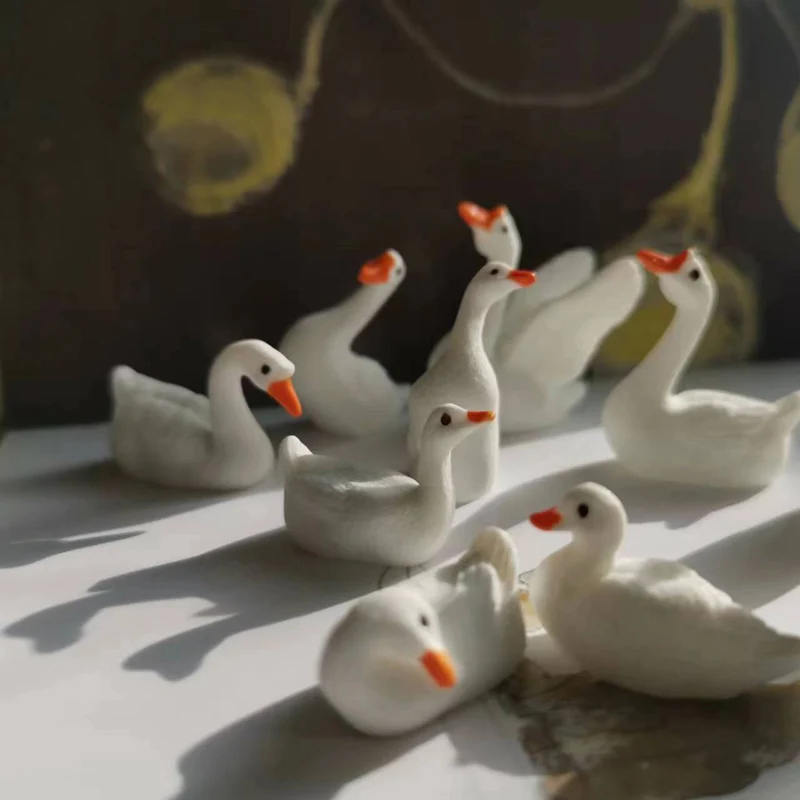 10Pcs Mini White Swan Figurines – Cute Animal Miniatures for Fairy Gardens, Terrariums, Bonsai & DIY Crafts