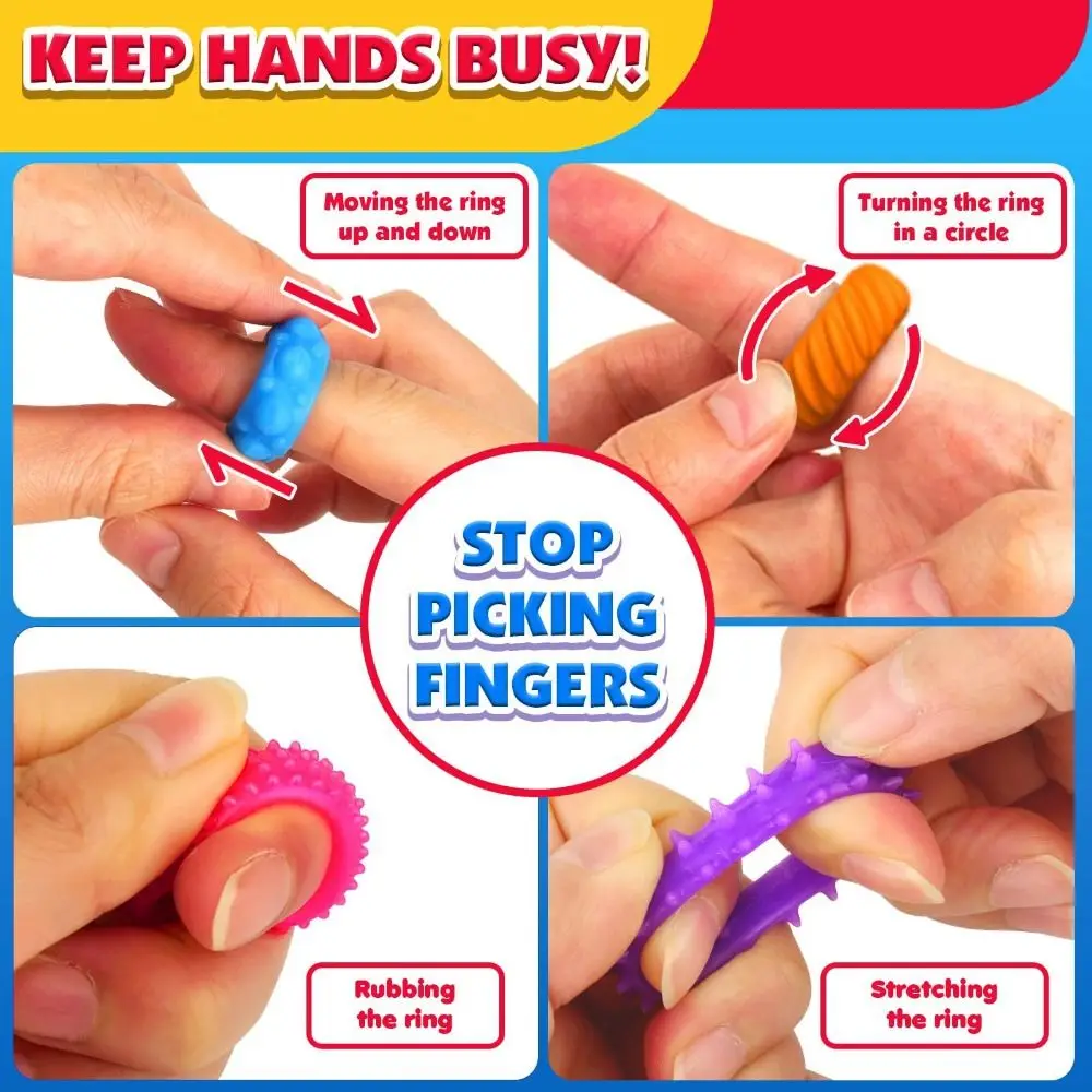 Discover a fun way to relieve stress with our 12pcs Spiky Sensory Finger Rings, perfect for kids and adults alike!