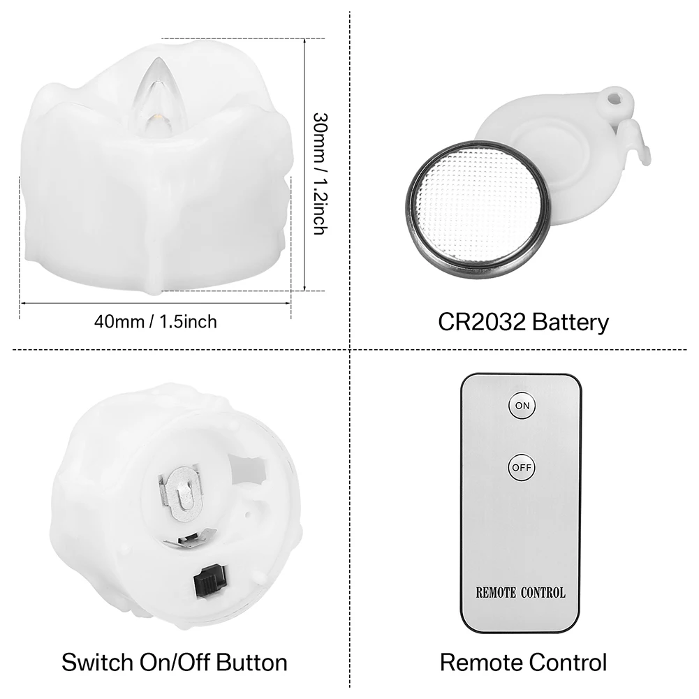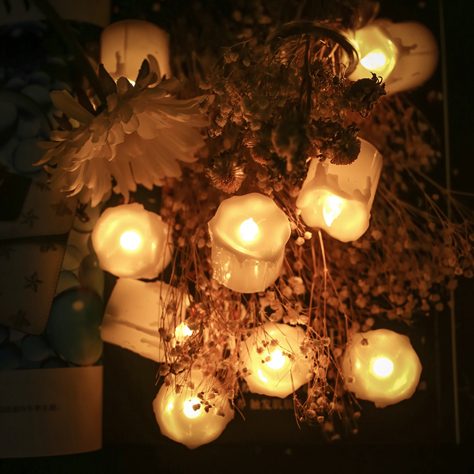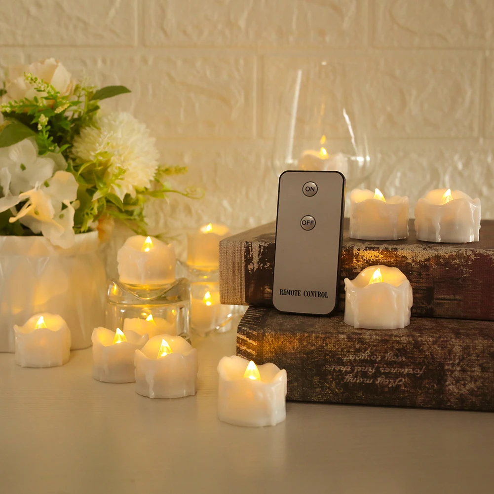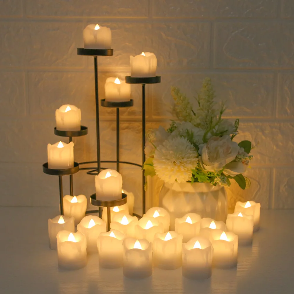 Realistic flameless LED tea lights in sets of 12 or 24, perfect for festive decor.