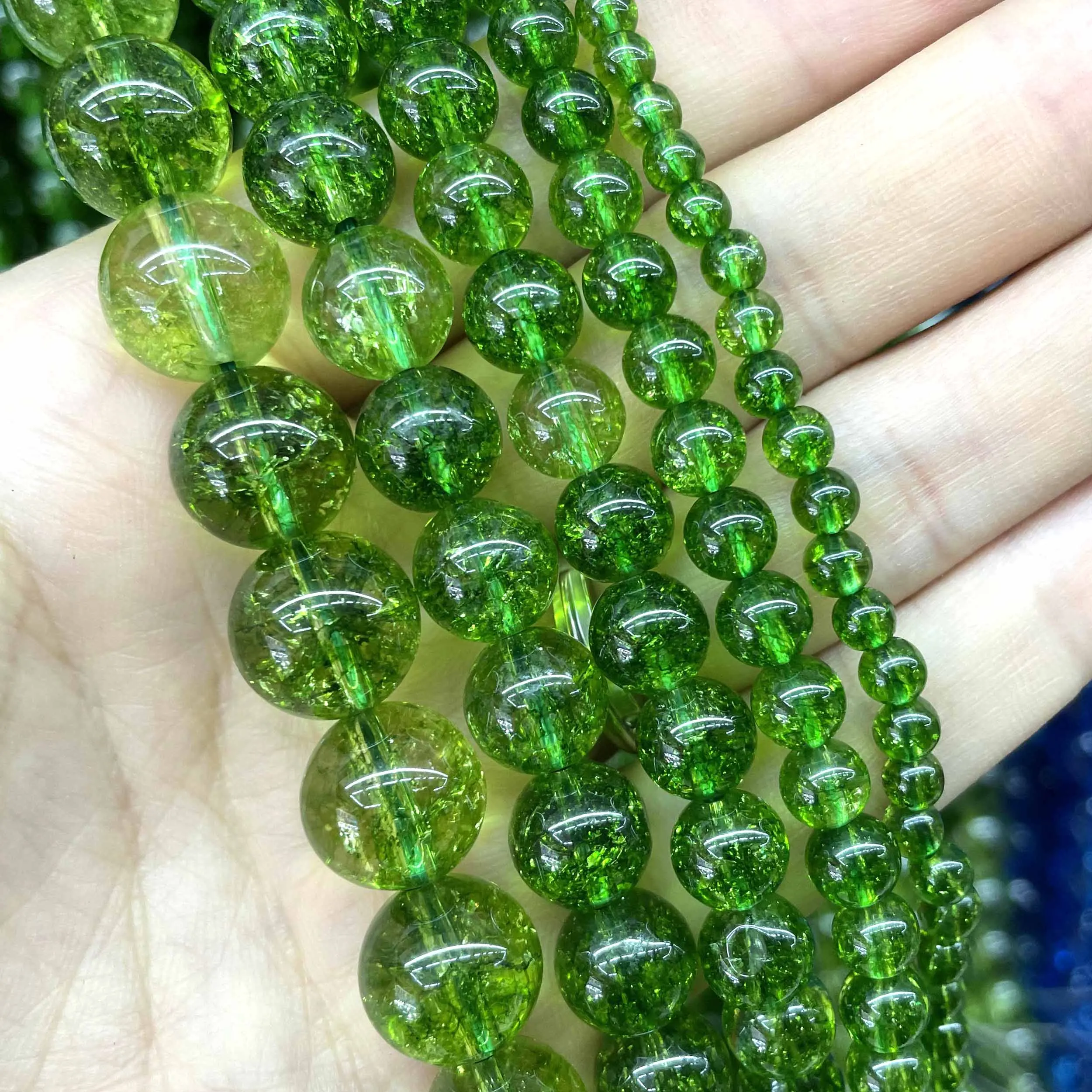 Hạt tròn thạch anh pha lê peridot xanh tự nhiên – Đá rời để làm đồ trang sức DIY (4mm–10mm)