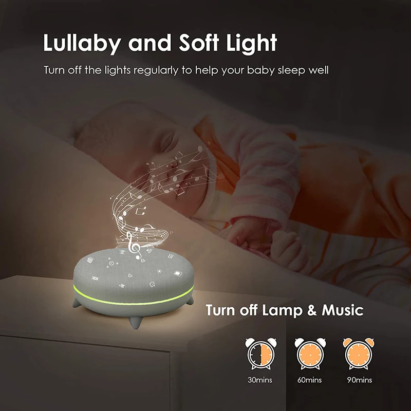 Experience tranquility with a sound machine offering seven nature sounds for sleep therapy.